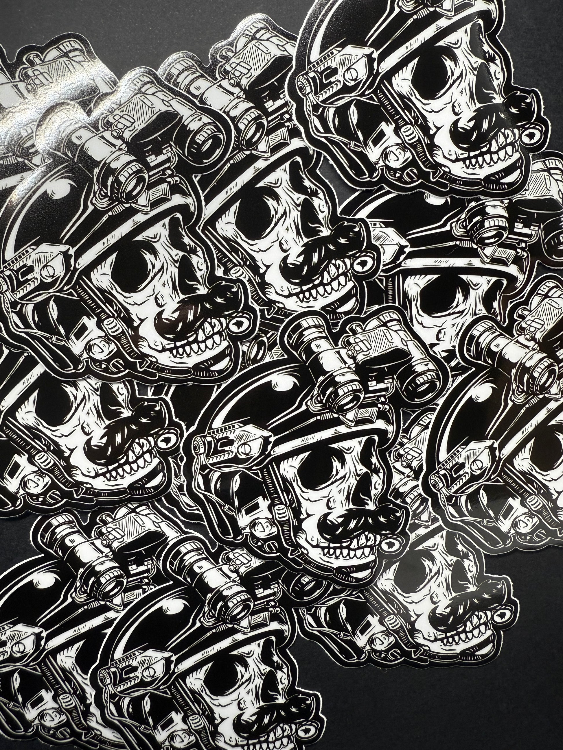 Rain, sun, or deployment — this skeleton isn’t going anywhere. Featuring a bold skull design with a perfectly questionable mustache, this all-weather vinyl sticker is ready to stick with you through every mission.